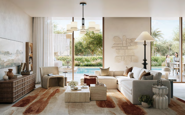 Wenn Sie diese elegante Villa mit 4 Schlafzimmern in Farm Grove 2 in The Valley by Emaar Properties betreten, werden Sie von einem hellen, offen gestalteten Wohn- und Essbereich begrüßt, der sich perfekt eignet, um Versammlungen abzuhalten und