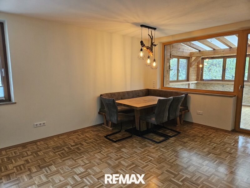 Herzstück der Wohnung ist der einladende Wohnbereich mit gemütlichem Pelletofen, der besonders in der kalten Jahreszeit für eine angenehme Atmosphäre sorgt. Vom Wohnraum aus gelangt man direkt in den ca. 18 m² großen Wintergarten, der den Wohnbereich auf ideale Weise erweitert und zu entspannten Stunden mit Familie und Freunden einlädt – ein heller Lieblingsplatz zu jeder Jahreszeit.