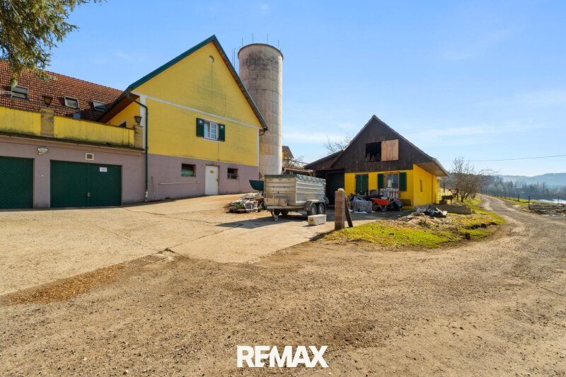 Auf einem Grundstück von gut einem Hektar präsentiert sich diese Liegenschaft als gewachsenes Ensemble mehrerer Gebäude und Nutzflächen. Die Kombination aus landwirtschaftlicher Infrastruktur, Wohnnutzung und großzügigen Freiflächen bietet eine Vielzahl an Möglichkeiten für Eigennutzer, Investoren oder landwirtschaftlich orientierte Projekte.