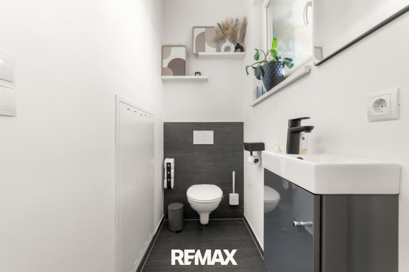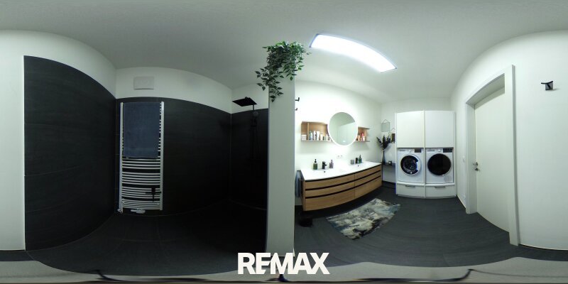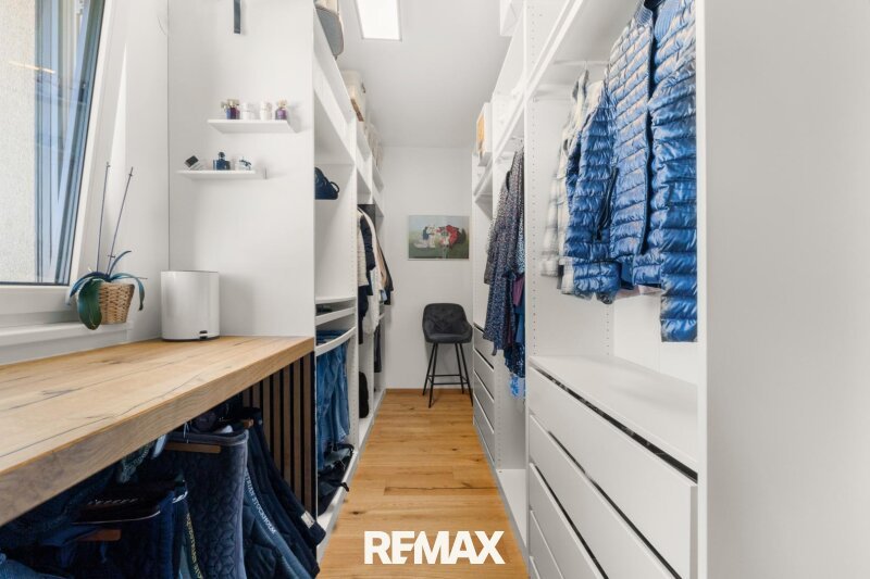 Auch im Innenbereich setzt sich der hochwertige Anspruch konsequent fort. Die Bauweise in 38er Ziegel mit zusätzlichem Vollwärmeschutz von 16cm, dreifach verglaste Kunststofffenster der Marke Josko in Großteils großzügiger Panoramaausführung mit Tönungsfolierung, elektrische Rollläden, teilweise ergänzende Plissees sowie vollwertiger Insektenschutz schaffen ein durchdachtes Gesamtpaket. Für ein angenehmes Raumklima sorgen Split-Klimageräte im Wohn- und Schlafbereich sowie eine komfortable Fußbodenheizung. Moderne SmartControl-Lösungen für Licht und weitere Funktionen runden das technische Niveau ab.
