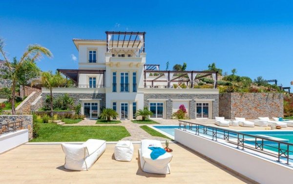 Kreta, Schisma Eloundas: Luxus-Villa mit herrlichem Blick auf Meer, Bucht und Insel zu verkaufen