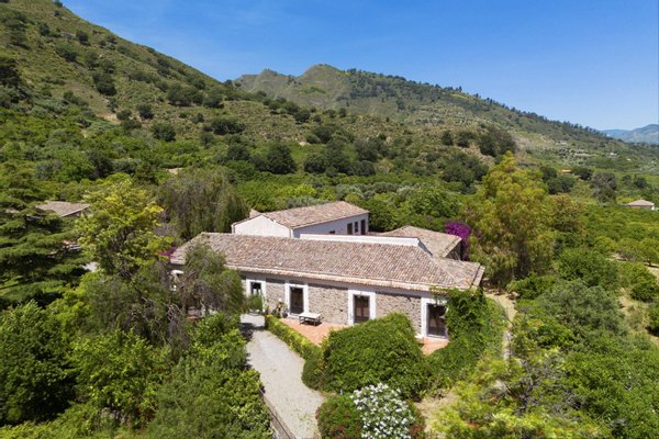 Zwischen den Hängen des Ätna, Taormina und Castiglione di Sicilia erhebt sich ein historisches Anwesen, eingebettet in üppiges Grün, das einen außergewöhnlichen Panoramablick auf die Küste bietet und eine Atmosphäre absoluter Ruhe vermittelt.Die größtente