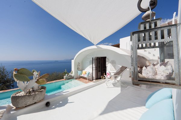 Villa Oleandro is a luxurious home situated between lemon and olive trees, immersed in typical Mediterranean scrub, with spectacular views over the sky and the sea, overlooking the lovely village of Praiano, Capri Island, Faraglioni, the Peninsula Sorrent