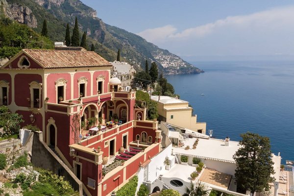 Palazzo Violetta with its strikingly rich red stucco facade and its dramatic terraces, draws the eye of anyone visiting Positano. T