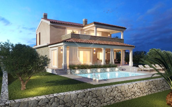Zum Erstbezug: Villa mit drei Schlafzimmern, Meerblick und Pool