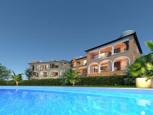 Appartements mit 3 Schlafzimmern, 2 Bädern, Tiefgaragenstellplatz und Gemeinschaftspool nur ca. 700 m vom Strand