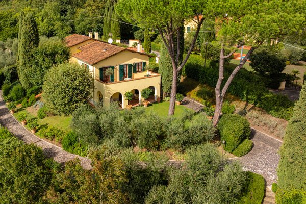In wunderbar privater und panoramischer Lage, in einer der prestigeträchtigsten und exklusivsten Gegenden von Lucca, und nur 2 km von den berühmten Stadtmauern entfernt, bietet diese elegante Villa, die in den frühen 1970er Jahren erbaut und 1990 renovier