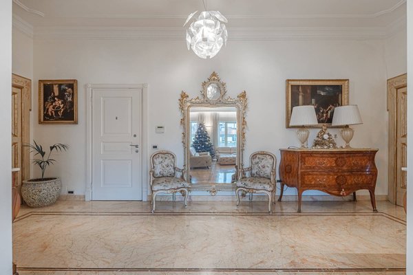 In Chiaia, einem der prestigeträchtigsten und begehrtesten Stadtviertel Neapels, befindet sich diese prächtige Wohnung im Dachgeschoss eines eleganten Altbaus, nur wenige Schritte von den wichtigsten Sehenswürdigkeiten der Stadt und der Uferpromenade entf