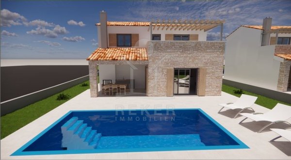 Neubau-Villa in Tar: Rohbau mit Platz für einen Pool