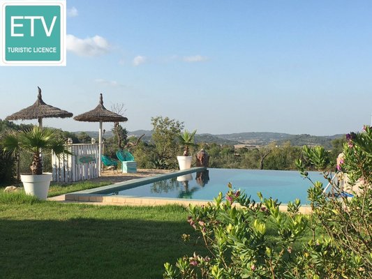 Traumhafte Finca mit großem Pool in weitläufiger Landschaft.