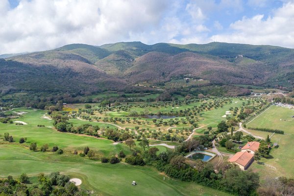 Auf dem Kamm eines Hügels gelegen, ist die Villa von einem Kastanienwald umgeben, durch den eine lange Zufahrtsstraße führt, die entweder zur Eingangszone oder direkt zur Garage führt. Die Villa befindet