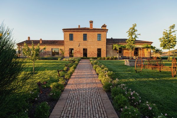 Podere Etrusco is structured around an ancient farmhouse made of travertine blocks, the style of the entire complex