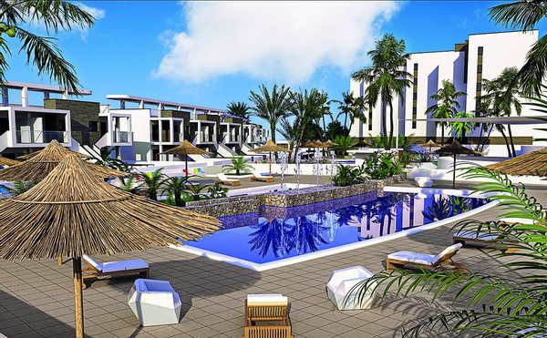 Appartements mit 2 Schlafzimmern und 2 Bädern in abgeschlossener Anlage mit Gemeinschaftspools nur 600 m vom Strand
