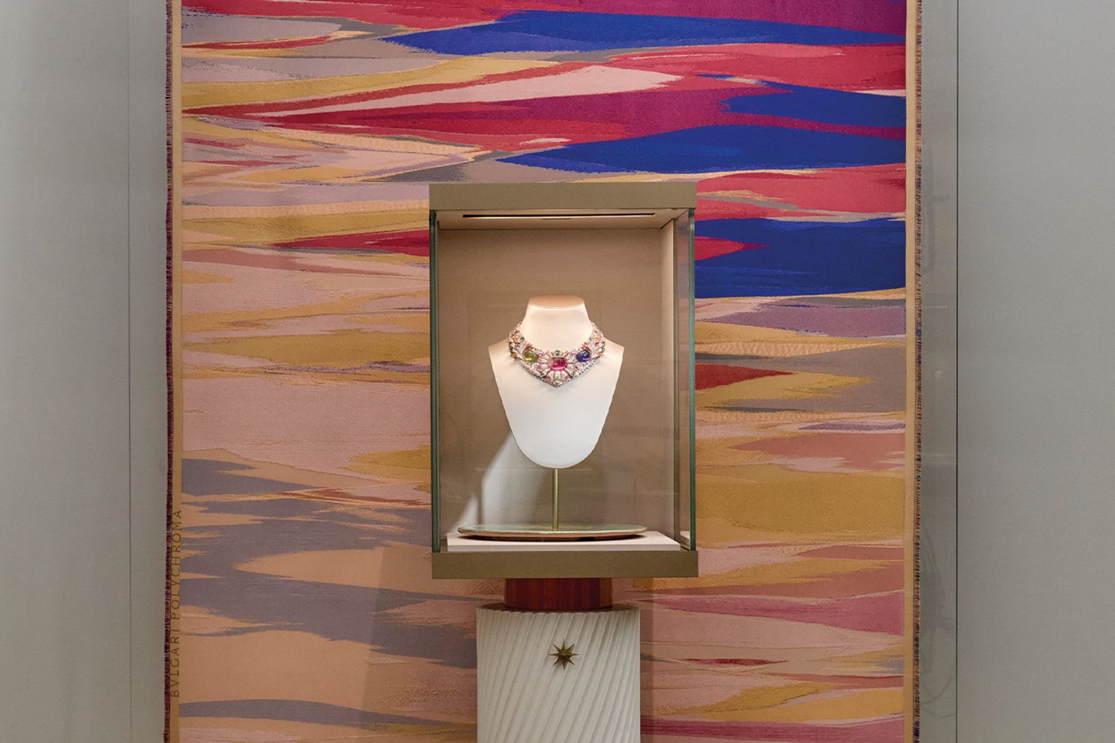 Für die Lancierung der neuen High Jewelry-Kollektion Polychroma, die im Mai in Taormina präsentiert wurde, fertigte das venezianische Familienunternehmen eigens eine Serie außergewöhnlicher Wandteppiche an.
