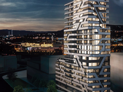 - München: Aus dem ehem. Heizkraftwerk wurde ein Wohnturm, mit Penthouses inkl. Panoramablick auf die Alpen Quelle: aiP Gärtnerplatz GmbH