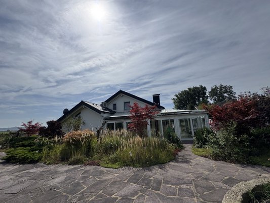 Auf dem etwa 1.268 Quadratmeter großen Grundstück befindet sich ein Stück gelebte Geschichte. Bis 1979 stand hier ein über hundert Jahre altes Bauernhaus, welches schließlich abgerissen und durch einen hochwertigen Neubau ersetzt wurde. Im Jahr 1998 wurde das Ensemble durch einen weiteren Gebäudeteil sowie den Bau einer Doppelgarage vollendet.