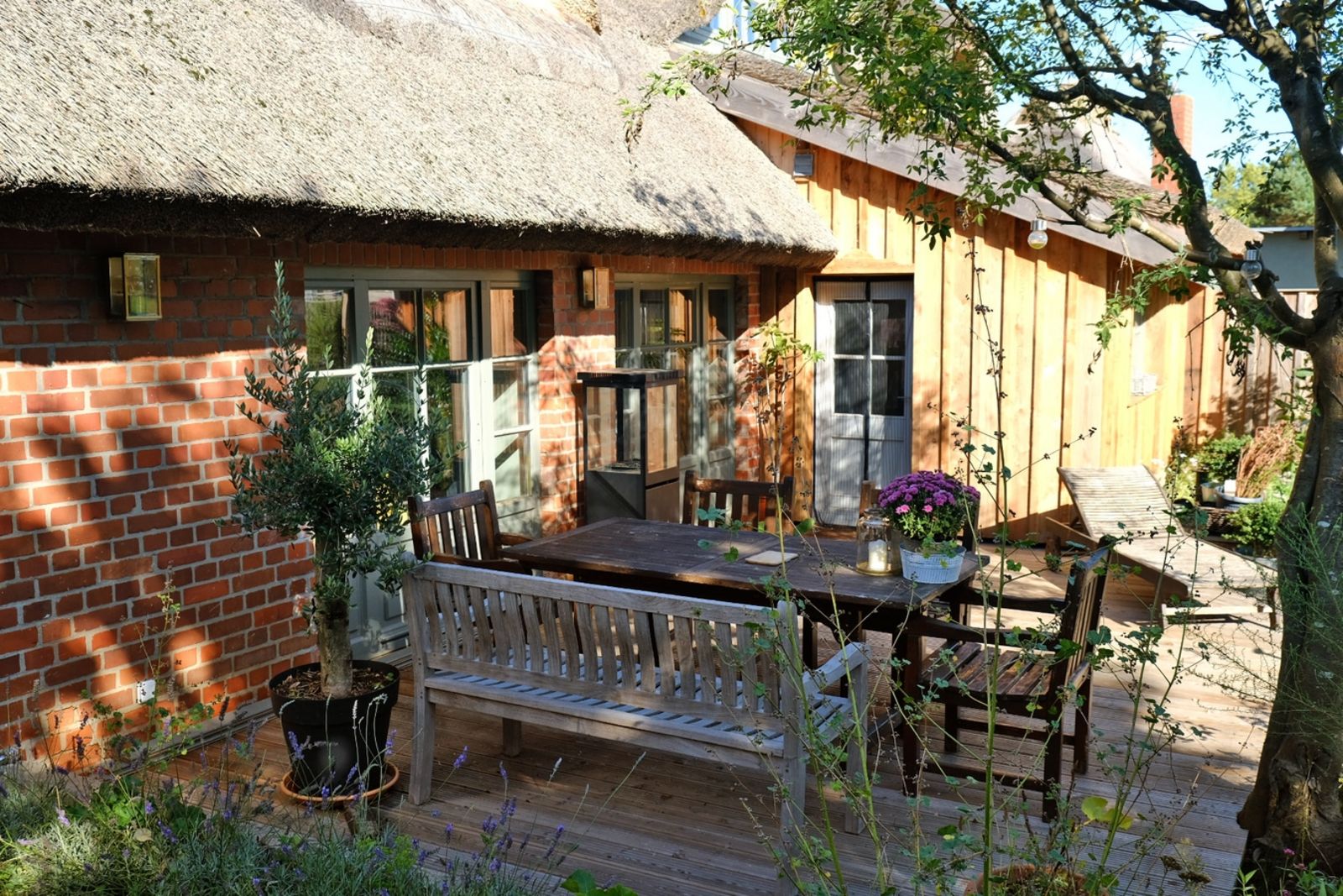 Neben seinem privaten Glück fand das Paar hier 2018 auch sein Traumhaus: Der einzige, über 200 Jahre alte Bauernhof des Ortes auf einem 6.000 Quadratmeter großen Wiesengrundstück mit Meerblick war optischer Anker der TV-Serie und stand 2018 zum Verkauf. „Wir haben ständig von diesem Haus geträumt, am Ende hat es uns dann gefunden“, so Stefanie Millat. Sie nannten es Gut Glück und machten sich an die Arbeit: Innerhalb von zwei Jahren bauten sie – überwiegend in Eigenregie – die erste, 120 Quadratmeter große Ferienwohnung auf zwei Etagen aus. Eine offene Küche mit angrenzendem Wohnbereich, drei Schlafzimmer sowie zwei Bäder bieten Platz genug für Urlaube mit Freunden oder Familie. „Mein Vater war Architekt und hat mir von klein auf die wichtigsten Bautechniken vermittelt“, so Till Demtrøder. Regie bei der Einrichtung führte Stefanie Millat. Hochwertiges wie die Hotelmatratzen von FBF bed & more, Wandfarben von Farrow & Ball, Möbel von Riviera Maison oder erlesene italienische Badfliesen kombinierte sie mit aufgearbeiteten Antiquitäten (Stichwort Nachhaltigkeit). Aktuell baut das Paar die zweite Ferienwohnung aus. Stefanie Millat: „Die Dorfbewohner kennen uns nur auf der Leiter in Handwerkermontur. Das wird sich so bald nicht ändern.“