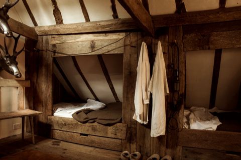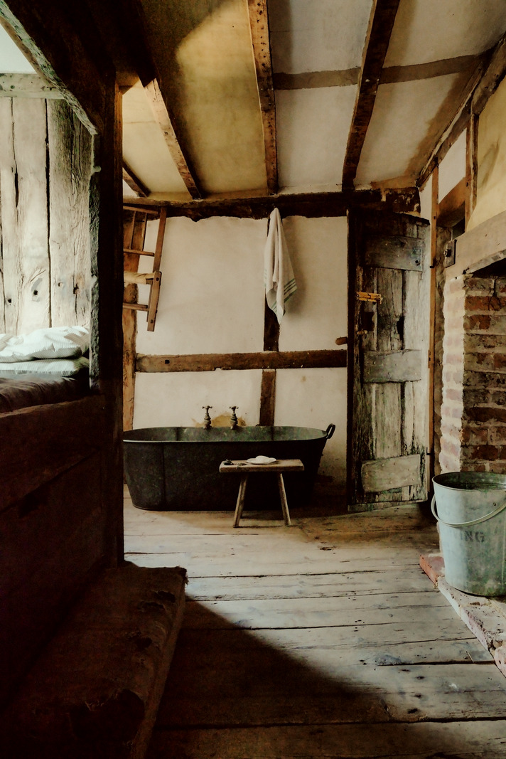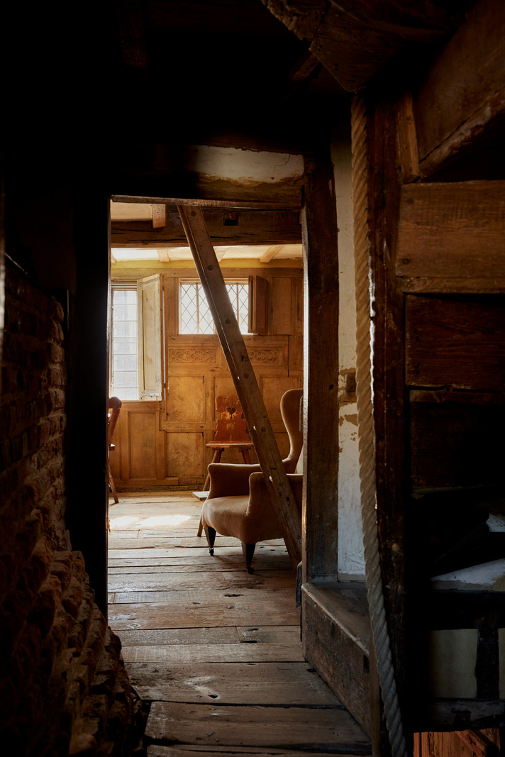 Im Rahmen einer leichten Restaurierung, die seinen ursprünglichen Tudor-Charakter bewahrt hat, wurden patinierte Eichenständer und profilierte Balken behutsam freigelegt, Latten- und Putzwände, rautenförmige Fenster, Treppen und ein voll funktionsfähiger Schornstein sowie Kamine wiederhergestellt. Das 145-Quadratmeter-Haus ist Teil des Spektrums an historischen Gebäuden, aus der die Altstadt von Hastings besteht.