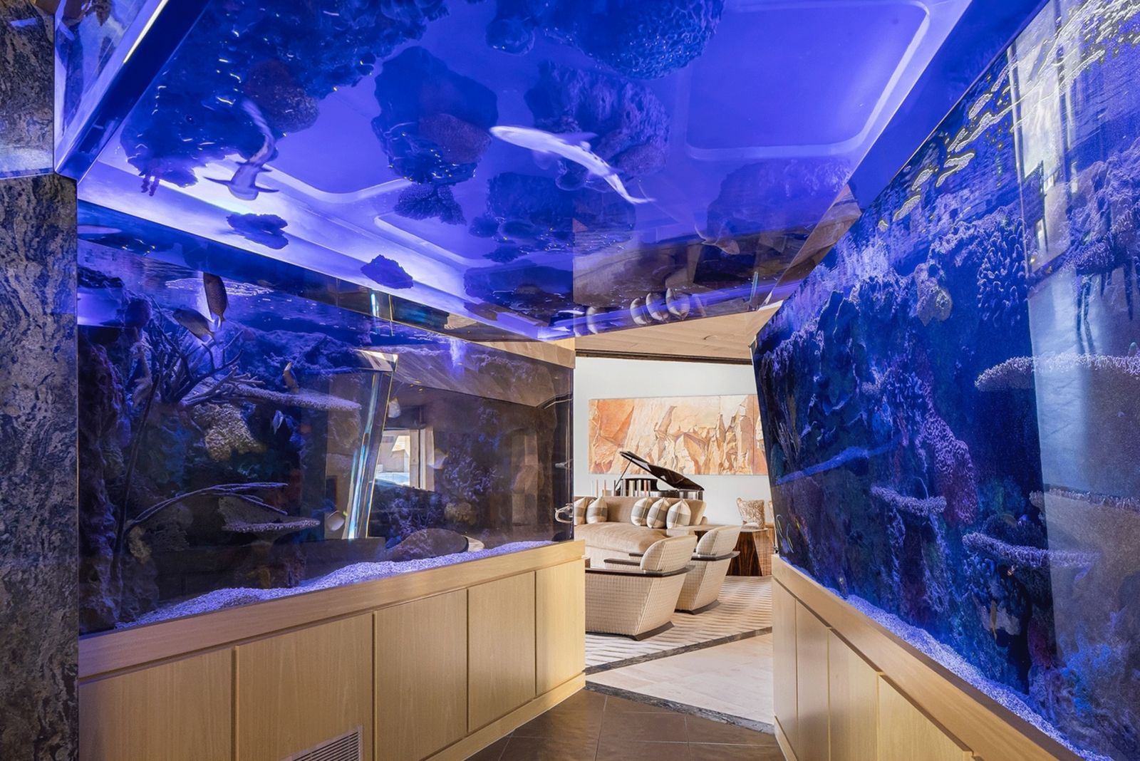 Abgesehen von der deutlich über der Wüste thronenden Lage sind der Clou aber der Haifisch-Tank sowie die drei ausladenden Pools. Das außergewöhnliche Design der Villa kann als perfektes Beispiel für „Indoor-Outdoor“-Leben mit Terrassen dienen. Platz und Aufenthaltsmöglichkeiten für vierhundert Personen sind vorhanden. Es ist das „ultimative Zuhause“ wie der Robb Report einmal titelte. Infos unter www.bighorngolf.com