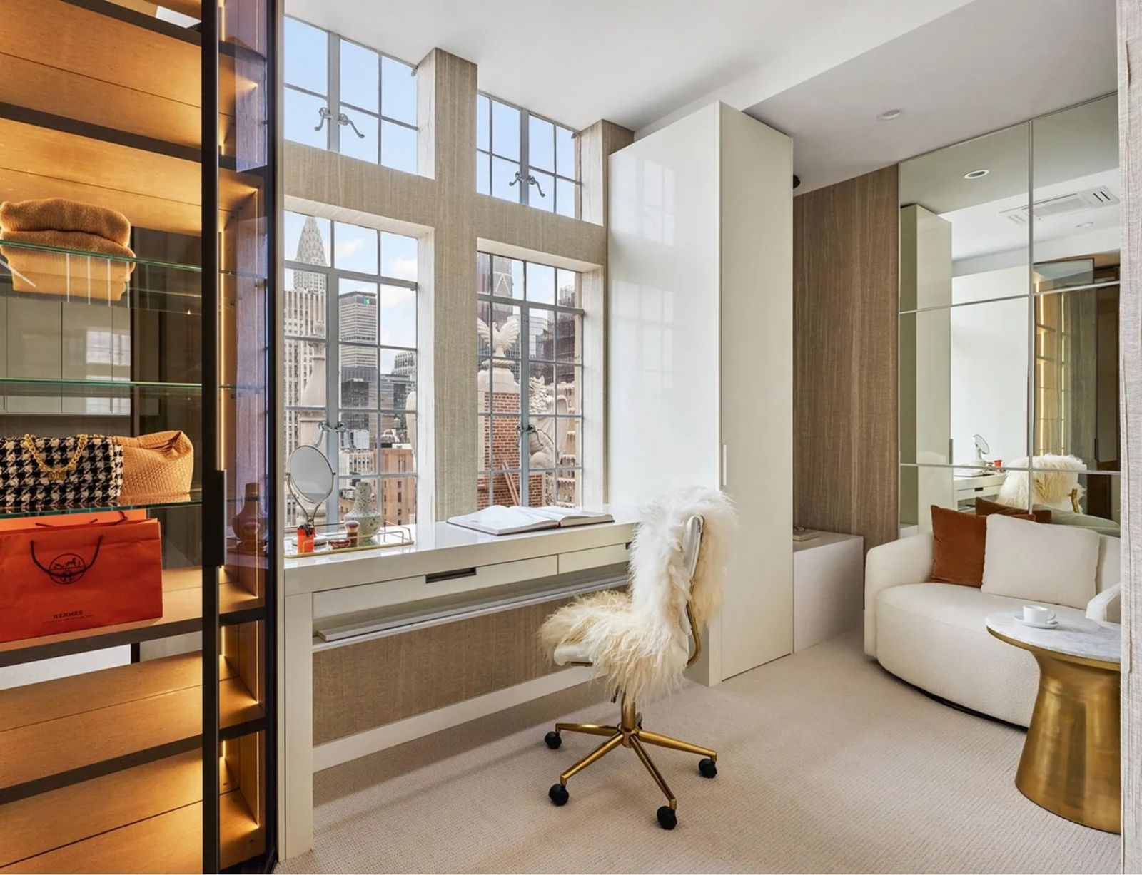 Vom repräsentativen Wohnzimmer mit offenem Holzkamin aus bieten sich traumhafte Ausblicke durch raumhohe Fester – zum Beispiel auf das Chrysler Building. Die Wohnfläche verteilt sich auf insgesamt drei Ebenen. Ein echter Clou befindet sich in der Spitze des Hauses: ein durchdachtes Ankleidezimmer sowie ein Home-Office mit maßgefertigten italienischen Schranksystemen. Die Bewohner des Hauses können das hochmoderne Fitnesscenter und einen Rund-um-die-Uhr-Service nutzen. 5 Tudor City Place liegt in der Nähe der Grand Central Station und der Uferpromenade des East River.