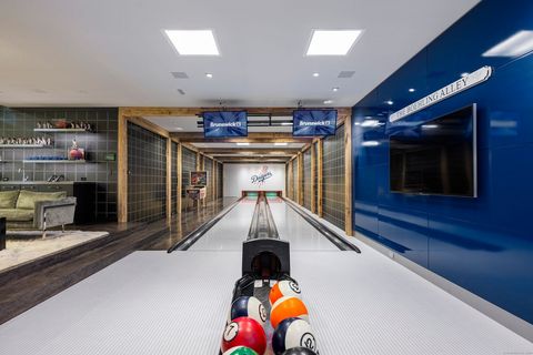 Neben den 3,85 Hektar Grund sowie dem rund 930 Quadratmeter Wohnfläche umfassenden Haupthaus im Kolonialstil, fällt vor allem das zweistöckige Sportcenter ins Auge. Dieses verfügt über insgesamt etwa 750 Quadratmeter Fläche und wird sicher jedem nur erdenklichen Anspruch gerecht. Bowlingbahn, Basketballfeld, Battingcage, Fitnessfläche, Pool mit Gegenstromanlage, Umkleidekabine oder Lounge – alle diese Facilities hat das mit großen, stahlgerahmten Fenstern ausgestattete Gebäude zu bieten.