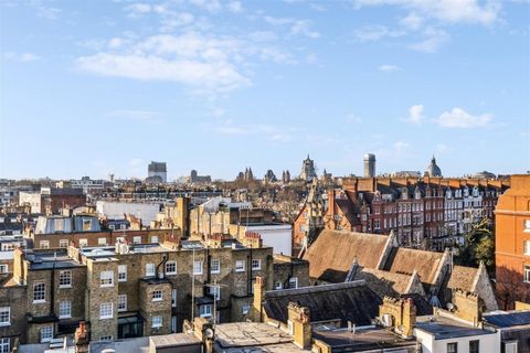 Im fünften und sechsten Stock des historischen Gebäudes in Knightsbridge befindet sich dieses hochmoderne und klimatisierte Duplex-Penthouse mit drei Schlafzimmern, drei Bädern und einem Blick über die Dächer der britischen Metropole sowie auf den Cadogan Square, den wohl begehrtesten Gemeinschaftsgarten des Stadtviertels. Der zwischen 1877 und 1888 errichtete Platz mit seiner roten Backsteinarchitektur ist das Herzstück des Cadogan Estate. In seinem Zentrum befindet sich ein Garten mit Zierpflanzen, weitläufigen Rasenflächen und einem Tennisplatz. Die Gärten sind seit ihrer ersten Anlage im Jahr 1886 relativ unverändert geblieben und stehen ausschließlich den Bewohnern zur Verfügung.