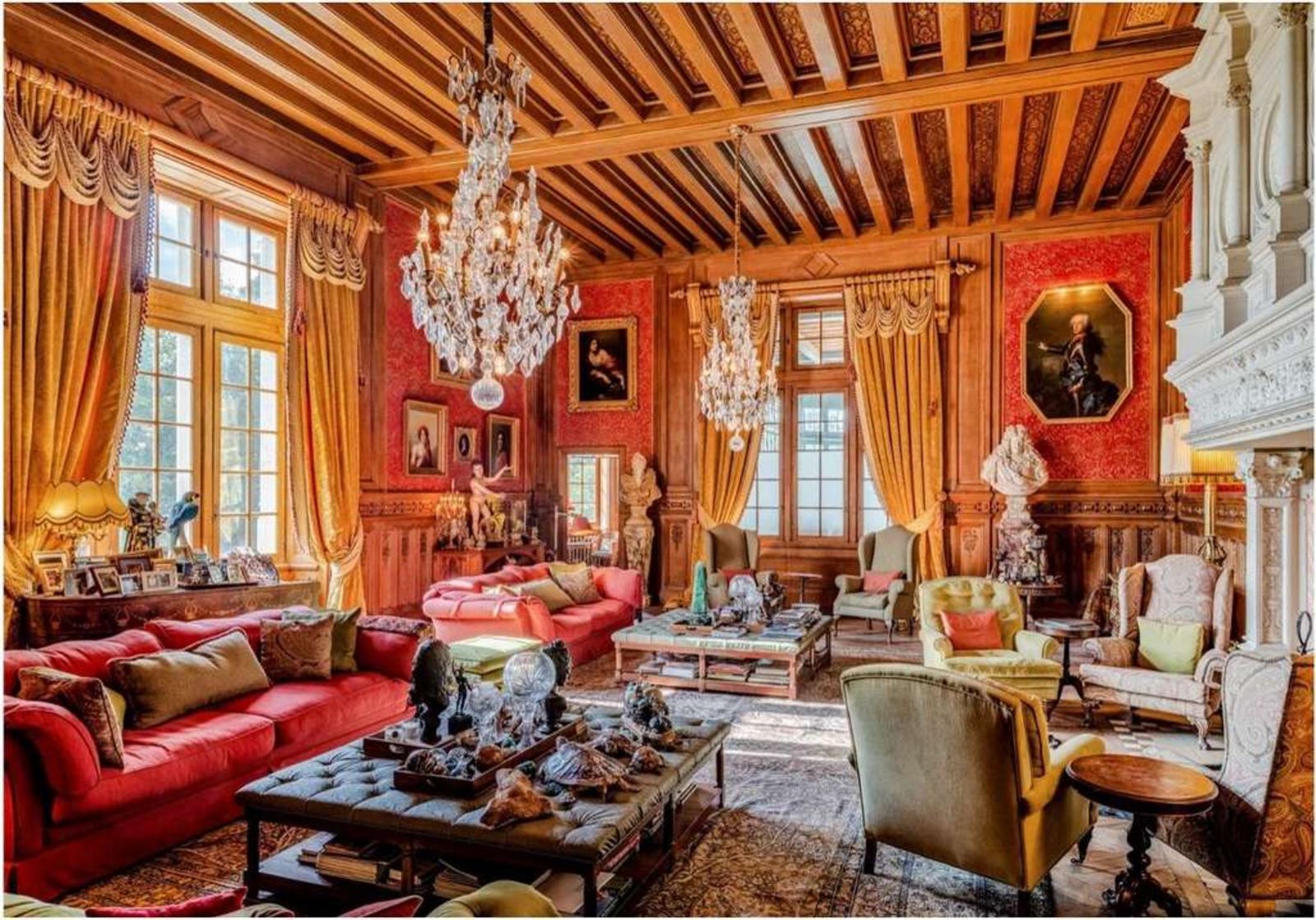 Insgesamt rund 3.000 Quadratmeter Wohnfläche, die sich auf 25 repräsentative Wohn- und 21 Schlafzimmer verteilen, stehen zur Verfügung. Unter den Räumlichkeiten befinden sich ein großer Empfangssaal mit spektakulär hohen Decken, ein Salon, eine Kapelle, eine Bibliothek, ein Schachzimmer, ein Billardzimmer, ein Musikzimmer und eine Orangerie mit freiem Blick auf den Park. Zu den opulenten Ausstattungsmerkmalen gehören einige geradezu majestätische Kamine, fein gearbeitete Möbel und exquisite Deckenmalereien.