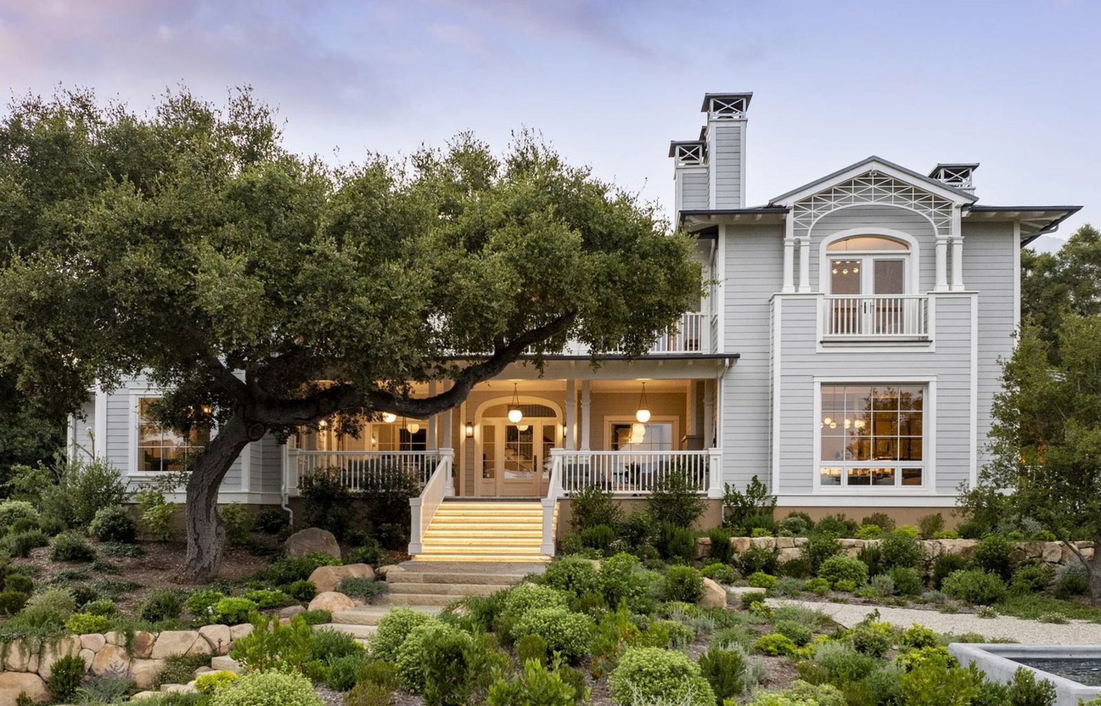 Bei dieser Immobilie hat sich die Überarbeitung jedenfalls mehr als gelohnt. Fast 780 Quadratmeter Wohnfläche befinden sich hinter der zartgrauen Holzfassade mit weißen Einfassungen. Spielerisch anspruchsvolles Design sowie flexible Grundrisse bilden eine perfekte Gesamtkomposition mit jeder Menge erwähnenswerten Extras von Aufzug und Kaminen bis zur gefliesten Veranda mit Sitzbereich und großer Holzschaukel. Auf dem rund 8.255 Quadratmeter großen, fast verwunschen wirkenden Grundstück stehen zudem ein Gästehaus sowie eine charmante Hütte zur Verfügung – perfekt für Gäste, Fitness oder als Atelier. Dieses neu gestylte Anwesen – das im Übrigen auch einige sehr prominente Nachbarn zu bieten hat – soll rund 17,2 Millionen Euro kosten. Infos unter www.realtor.com
