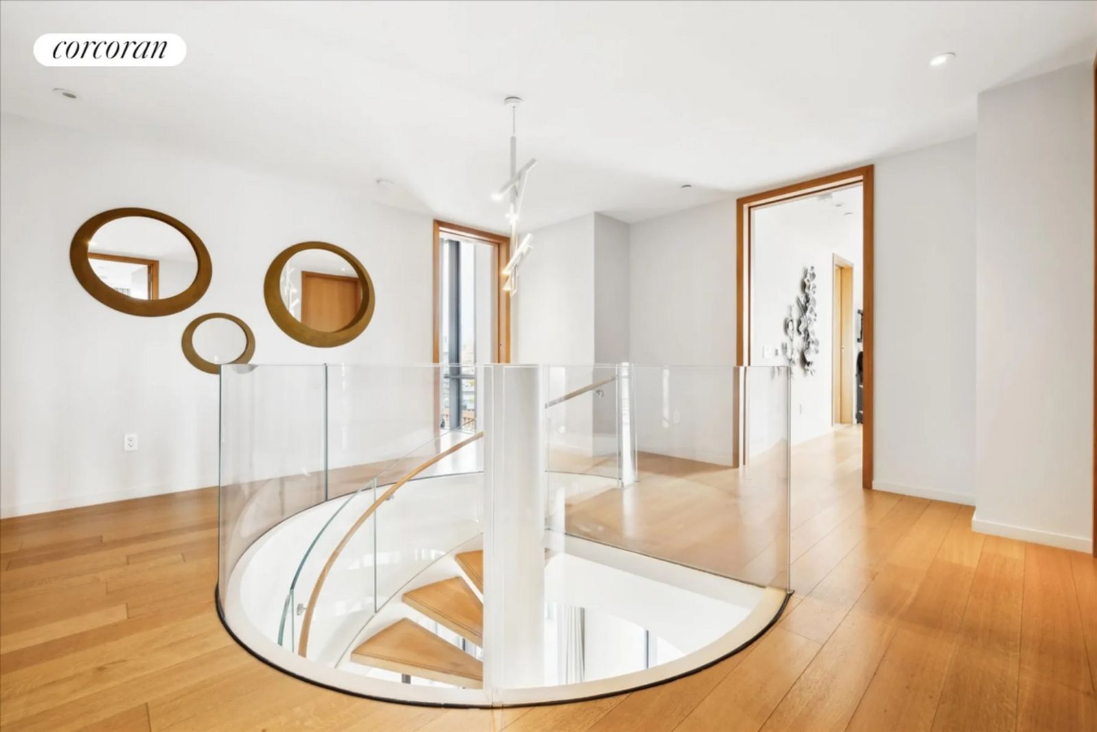 Mit dem Aufzug oder wahlweise über eine markante und extrabreite Wendeltreppe, erreicht man das Obergeschoss mit vier Schlafzimmern. Darunter befindet sich auch die luxuriöse Hauptsuite mit Spa-ähnlichem Badezimmer, einer tiefen Badewanne und hochwertigen Oberflächen ausgestattet ist. Zwei weitere Schlafzimmer verfügen über ein eigenes Bad. Aufgerufen sind rund 13,57 Millionen Euro.