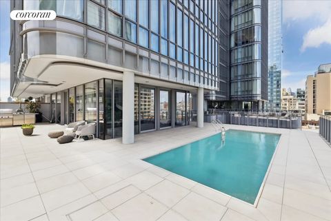 Rund 332 Quadratmeter Wohnfläche, vier Schlafzimmer und 3,5 Bäder umfasst das zum Verkauf stehende Apartment. Spektakulär ist schon der über 70 Quadratmeter große Empfangsbereich, der komplett mit bodentiefen Fenstern ausgestattet ist und den Raum mit Licht durchfluten. Von hier aus gelangt man auf den über 200 Quadratmeter großen Außenbereich – eine umlaufende private Terrasse mit beheiztem 20-Quadratmeter-Poll und Außengrill. Perfekt für die Party über den Dächern des „Big Apple“.