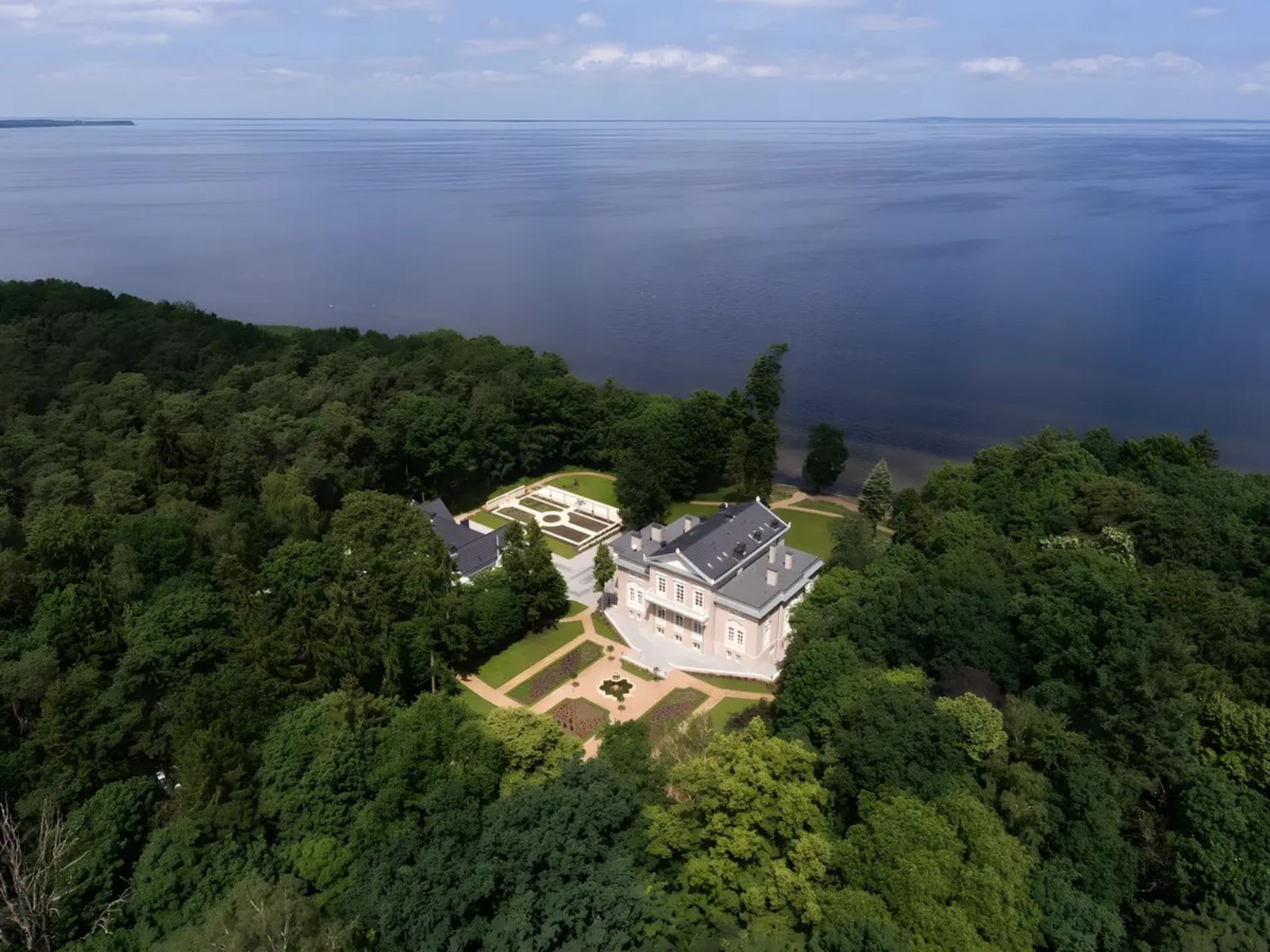 Dieser historische Palast sei nicht nur eine Hommage an die Handwerkskunst und Architektur einer vergangenen Epoche, sondern auch der Inbegriff von Eleganz und Erhabenheit, heißt es in der Objektbeschreibung. Und tatsächlich scheint hier, an der Küste – direkt gegenüber der deutschen Grenze – die Zeit stehen geblieben zu sein. Umgeben von ausgedehnten Wäldern, die völlig Ruhe und Privatsphäre bieten, befindet sich das 1908 errichtete Anwesen in einzigartiger Lage auf einem etwa 2,4 Hektar großen Grundstück direkt in der unberührten Bucht der polnischen Ostsee.