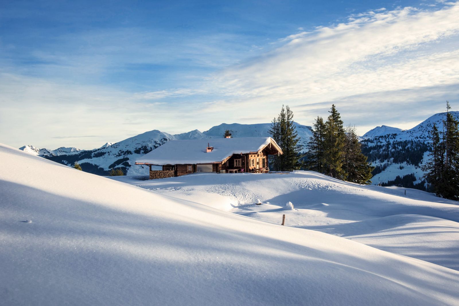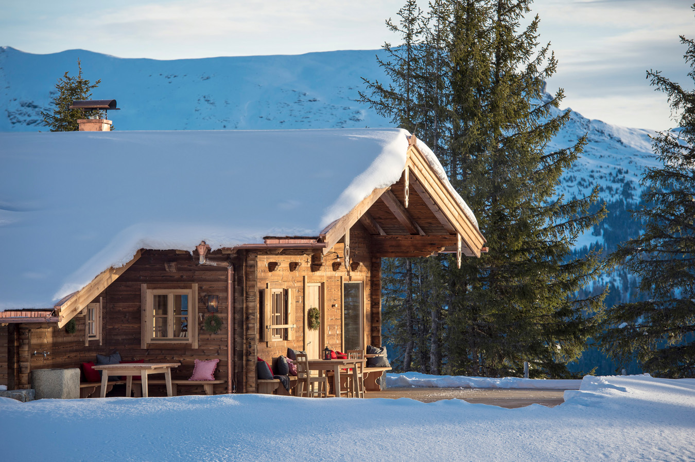 Nicht einmal Google Maps kennt diesen Ort. Nur mit Skiern an den Füßen oder mit dem Skidoo ist das romantische Holzhaus zu erreichen. Der weiße Schnee liegt wie eine flauschige Decke über den Wiesen, überzuckert die Berge und lässt die Alm eins werden mit ihrer Umgebung. Eine Idylle, wie wir sie sonst nur aus romantischen Liedern kennen.