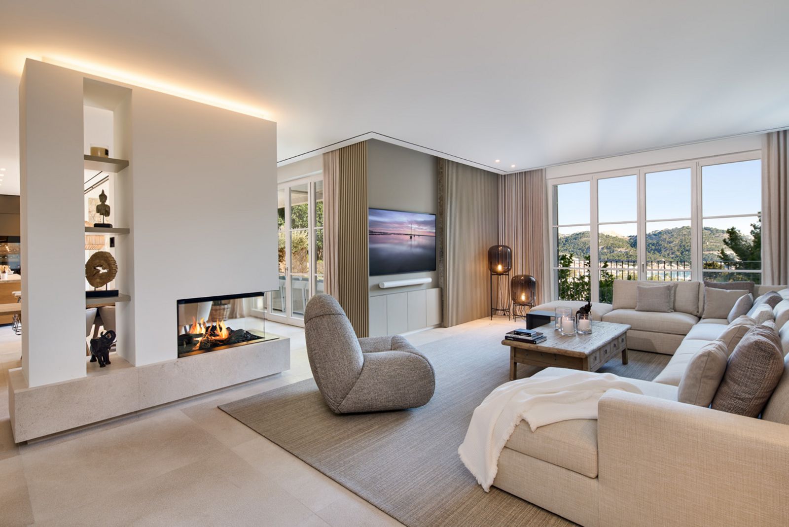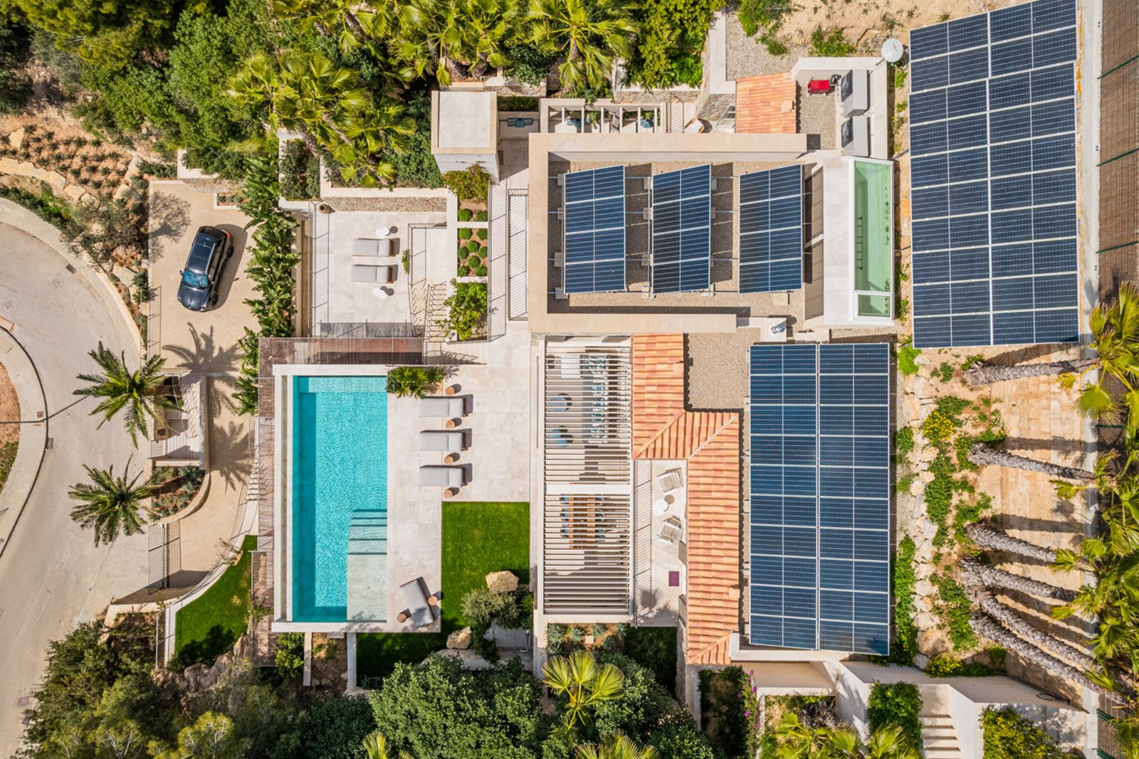 Die Villa steht zum sofortigen Einzug bereit. Die Palmen, Zitronen- und Olivenbäume sind gepflanzt, alles ist komplett eingerichtet und ausgestattet. Inneneinrichtung und Dekoration stammen von Terraza Balear, einem der führenden Interior-Designer der Insel. Die Haustechnik entspricht höchster Qualität und dem derzeitigen State of the Art. Dem „puren Leben“ steht nichts mehr im Wege.