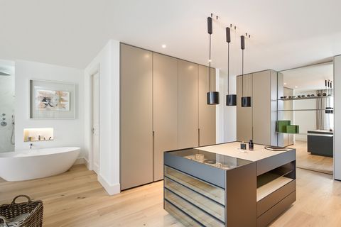 Im vierten und letzten Geschoss befinden sich der 60 Quadratmeter große Master Bedroom mit Ankleidezimmer und Bad sowie zwei weitere Schlafzimmer mit Bad en suite.
