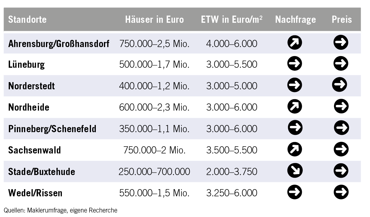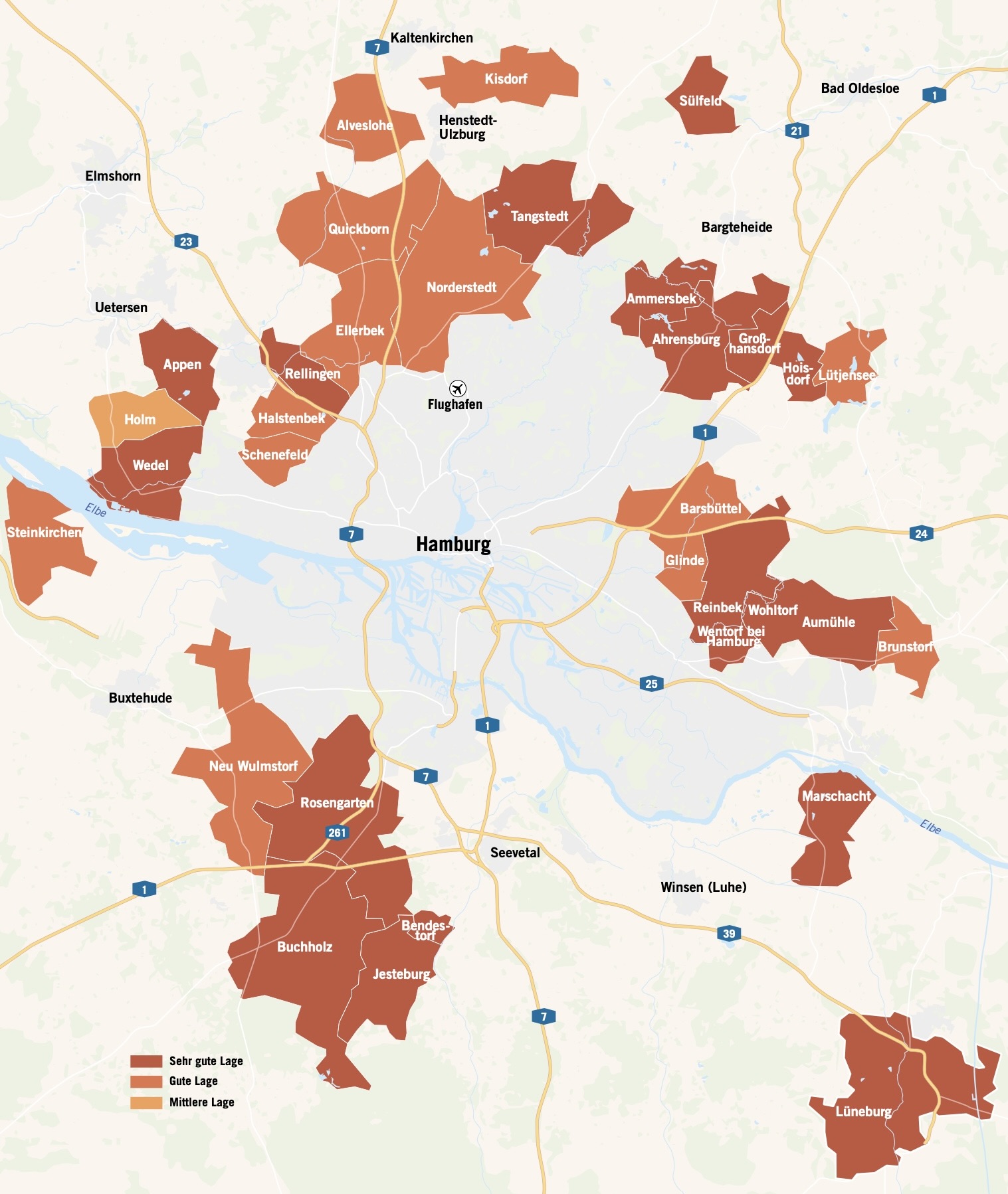 Im Einzugsbereich Hamburg ist eine Vielzahl an attraktiven Wohnstandorten zu finden. Bei passender Anbindung und entsprechenden Möglichkeiten vor Ort ist der Speckgürtel weiterhin sehr gefragt