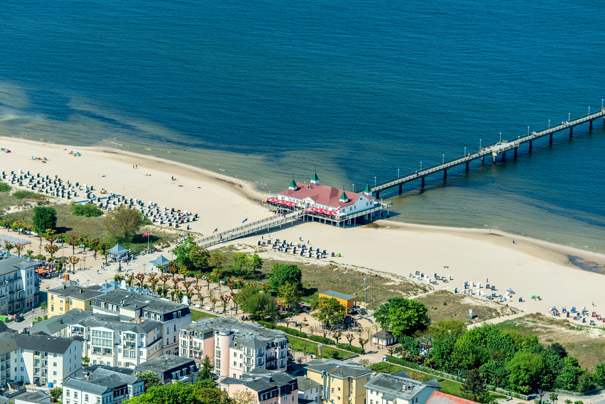 Zur Sonne gibt es den passenden Strand: Über 42 Kilometer erstreckt sich der bis zu 70 Meter breite, feine Sandstrand von Peene bis nach Swinemünde. Touristische Zentren der Insel sind im Nordwesten Karlshagen, Trassenheide und Zinnowitz, im Mittelteil der Insel liegen die Bernsteinbäder Koserow, Loddin, Ückeritz und Zempin. Die Highlights der Insel sind aber die drei Kaiserbäder im Osten: Bansin, Heringsdorf und Ahlbeck. Schon seit 1850 kommen die Sommerfrischler nach Usedom, bauten sich prächtige Villen, die Küste galt als die „Badewanne Berlins“ – 200 Kilometer sind es von hier bis zur Hauptstadt.