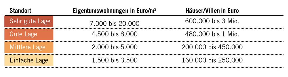 Im touristisch beliebten Tirol steht Kitzbühel bei den Immobilienpreisen seit Jahren an der Spitze. Tür an Tür mit Stars und Sternchen zu wohnen hat seinen Preis. In Sonnberg und am Lebenberg liegen die Quadratmeterpreise für Luxuswohnungen derzeit zwischen 20.000 und 30.000 Euro. Ähnlich hochpreisig sind auch Reith, Aurach und Jochberg. Trotz des gesalzenen Preisniveaus können die örtlichen Immobilienmakler keinen Rückgang in der Nachfrage feststellen, vor allem sonnige Aussichtslagen sind begehrt und werden hoch gehandelt.