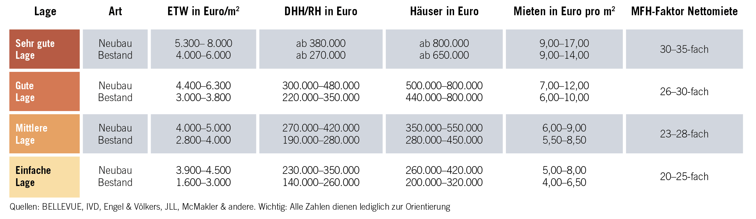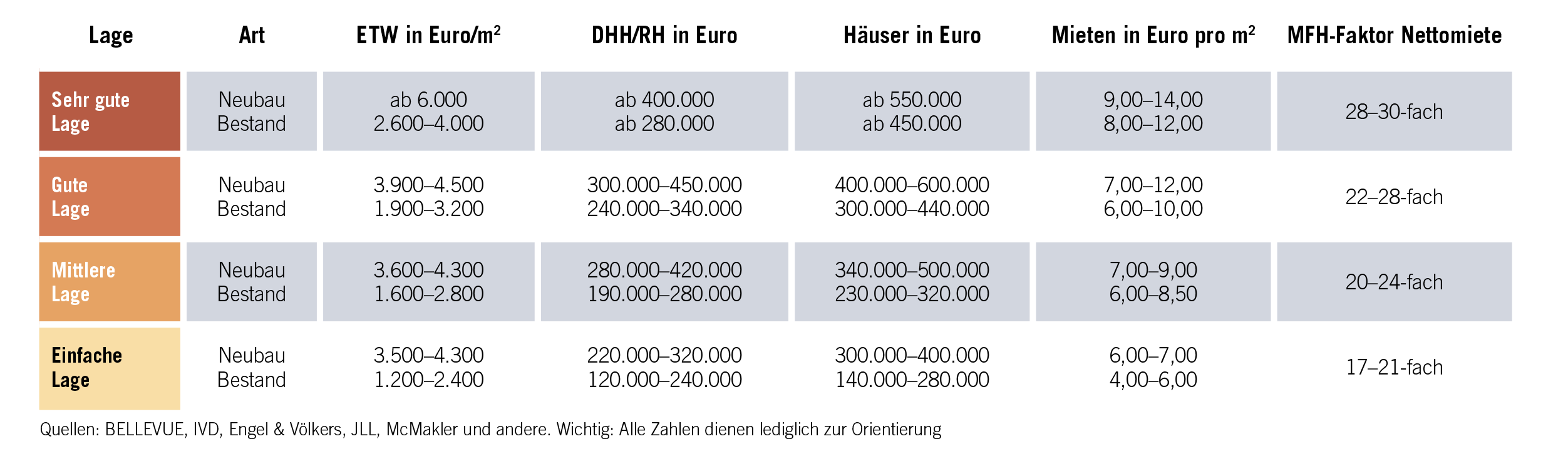 Auch Leipzigs Immobilienpreise rufen bei Interessenten von auswärts keine Schnappatmung hervor. Zumal auch hier die Preise seit 2022 etwas nachgeben mussten. Solide Bestandswohnungen werden derzeit zwischen 3.500 und 4.000 Euro je Quadratmeter gehandelt. Für Topobjekte werden heute je nach Lage und Zustand 6.000 bis 8.000 Euro je Quadratmeter gezahlt. Einige Bauträger wagen sich auch schon über die 10.000-Euro Grenze.