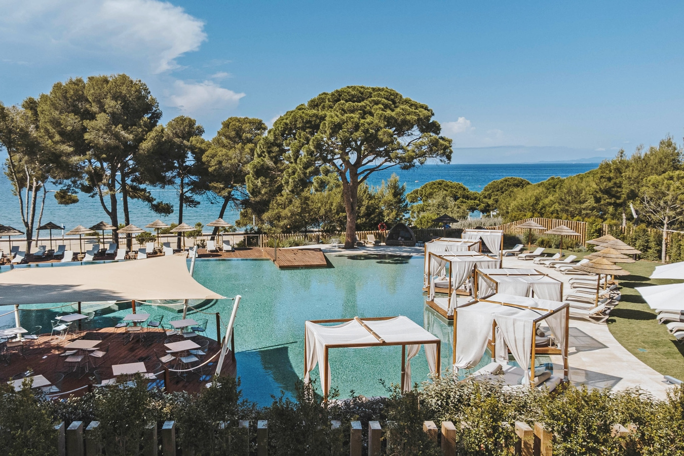 Am Resort-eigenen Strand findet sich der Beachclub mit acht Becken und Infinitypools, balinesischen Daybeds und Wasserliegen, vier Restaurants und Bars, Bereichen für Erwachsene und Familien, Kids Club, Fitness- und Spa-Bereich.