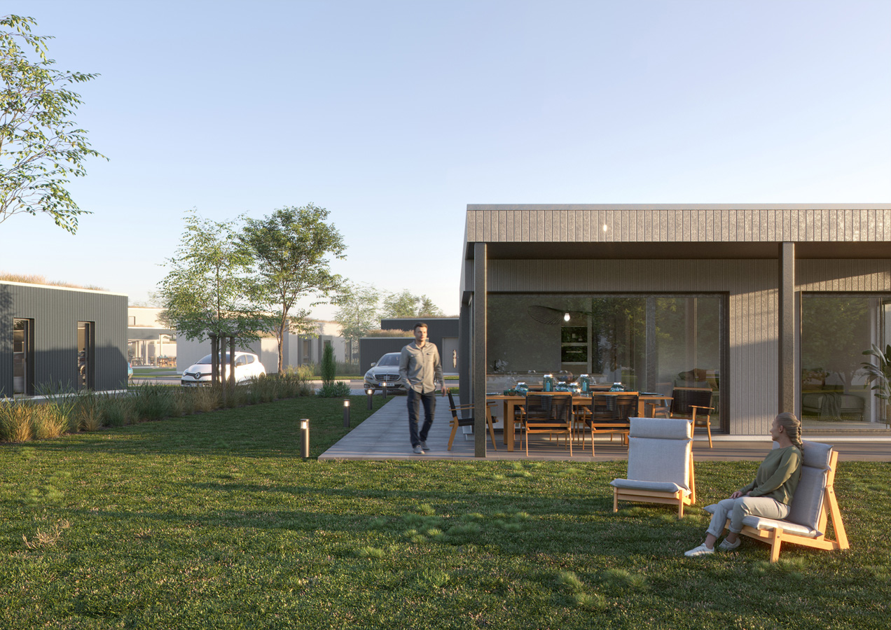 Fünf verschiedene Haustypen wechseln sich innerhalb des Resorts ab und bieten perfekt abgestimmtes Wohndesign sowie eine hochwertige Ausstattung. Große Fensterfronten lassen das Tageslicht herein, und die überdachten Terrassen erweitern den Wohnbereich. Die einzelnen Gärten passen sich den Außenanlagen und der umliegenden Natur an, die mit Gräsern und heimischen Gewächsen das Stimmungsbild des Resorts harmonisch ergänzen.