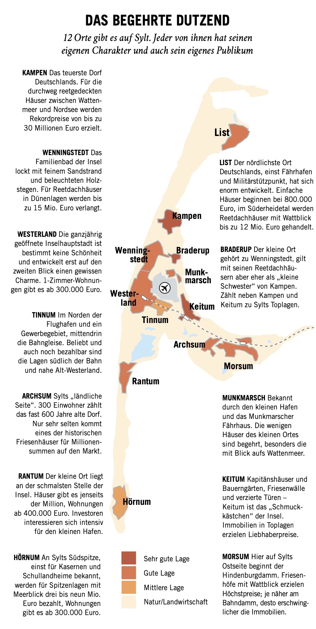 Wer sich für Sylter Immobilien interessiert, sollte die Besonderheiten der Insel kennen. Das Angebot an Immobilien auf der 99 Quadratkilometer großen Insel ist überschaubar. Schätzungen zufolge stehen in der Regel 150 bis 200 Wohnungen und Häuser zum Verkauf. Sylt soll die höchste Maklerdichte des Landes haben und gilt in der Branche als „Haifischbecken“. Offiziell sind rund 200 angemeldete Immobilienmakler aktiv, viele davon allerdings nur nebenberuflich als „Gelegenheitsmakler“. Es gibt ungefähr 30 bis 40 Maklerbüros.