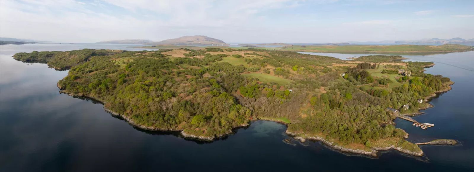Das abwechslungsreiche Gelände bietet einen Panoramablick und natürlichen Schutz für Vieh und Wildtiere und ist damit ideal für Landwirtschaft, Sport und private Erholung. Der Zugang erfolgt über eine private Slipanlage mit Bootshaus sowie einem Ponton/Helipad an der nordwestlichen Spitze. Hinzu kommt eine zweite Slipanlage beim South End House. Eine 10-minütige Bootsfahrt vom Jachthafen Craobh Haven bietet einen bequemen Zugang bei völliger Abgeschiedenheit.