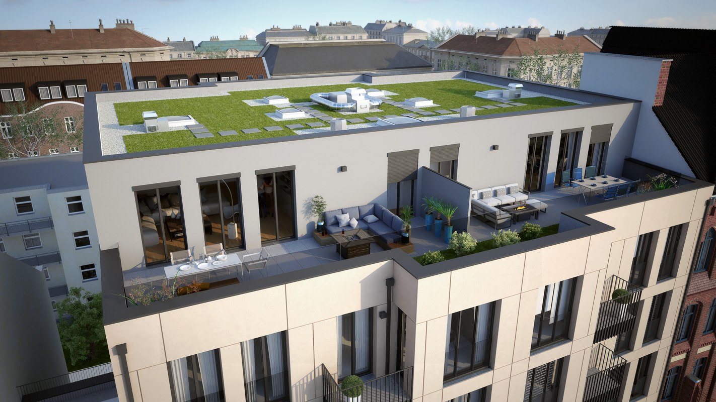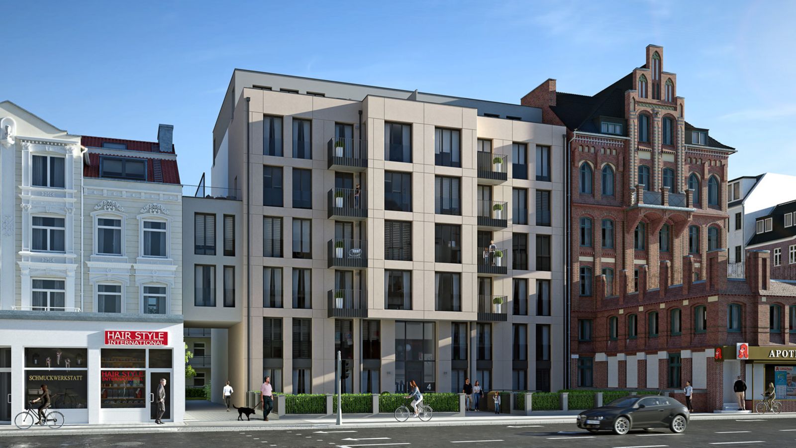 Insgesamt sind im Rahmen des Projektes 38 Wohneinheiten mit Wohnflächen zwischen 38 und 133 Quadratmetern sowie 19 Tiefgaragen-Stellplätze entstanden. Besonderes Highlight – neben der zentralen Lage zu City und Alster – sind die zwei Penthouse-Wohnungen, deren Dachterrassen einen beeindruckenden Blick über die Stadt bieten. Die helle Fassade – die übrigens in Absprache mit den Behörden für Stadtplanung und Denkmalschutz so gestaltet wurde – wirkt modern, ohne die Altbauten nebenan zu übertönen.