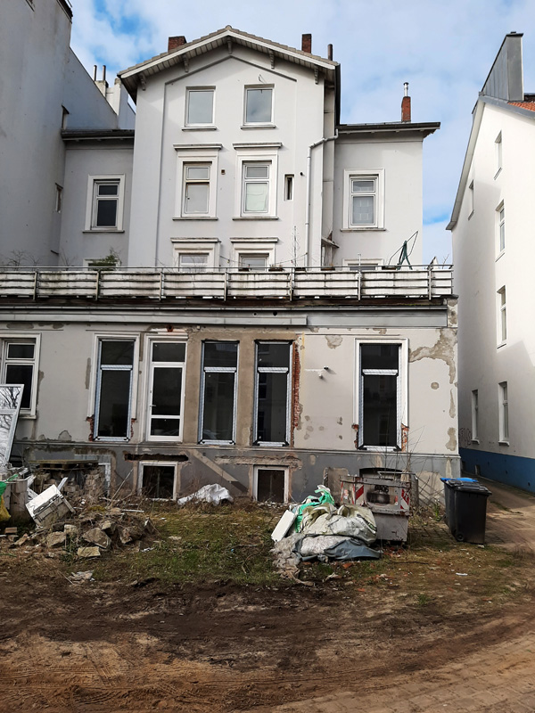 Auch auf den Ämtern hatte Corona die Arbeit ausgebremst. Die längst beantragte Grundwasserabsenkungsgenehmigung wurde mit sechs Monaten Verzögerung erteilt. Nach Suchschürfungen – dahinter verbirgt sich die minimale Freilegung der Fundamente der Nachbargebäude – habe man außerdem festgestellt, dass die Bestandsunterlagen nicht den Gegebenheiten entsprächen. Projektentwickler Peter Karshüning: „Es ist natürlich nicht erfreulich, wenn man Verzögerungen durch derartige Faktoren hat, aber als Bauträger muss man immer mit so etwas rechnen. Man weiß nie, was im Boden gefunden wird.“
