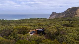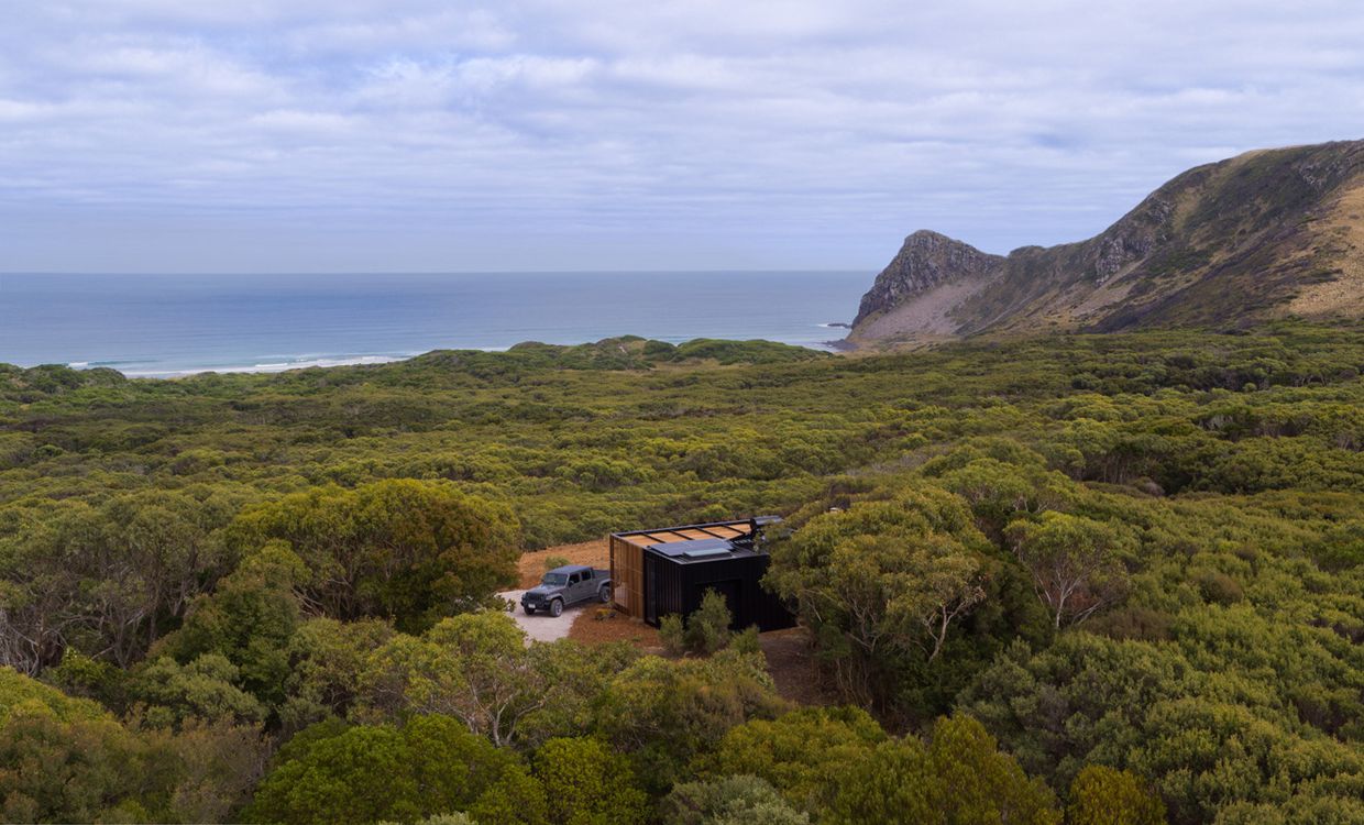 Das Haus, das auf dieser Seite zu sehen ist, stand 2021 an der Küste Tasmaniens, der wilden Insel vor der Südostspitze Australiens. Stand, wohlgemerkt. Mitten im Tarkine Forest im Nordwesten der Insel, zu dem es mit einem LKW gebracht worden war.