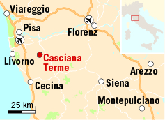 Casciana heißt die Ortschaft mitten in Italiens Toskana. Pisa oder die Küste sind von hier aus in einer Dreiviertelstunde per Auto zu erreichen, nach Florenz oder Siena ist man eine Stunde länger unterwegs. Bekannt ist der knapp 2.500 Einwohner zählende Ort durch seine Heilquellen. Mit konstanten 35,7 Grad sprudelt hier das Wasser der Terme di Casciana aus der Erde. Ein Bad im warmen Quellbecken lindert nicht nur Rheuma, Arthrose und gynäkologische Erkrankungen, sondern gilt sogar als eine Art Jungbrunnen. Im 9. Jahrhundert soll die zahme, altersschwache Amsel der Contessa Matilde di Canossa in die Heilquellen ein- und kurz darauf sichtlich verjüngt wieder aufgetaucht sein. Die Legende war geboren und wird seit über 1.000 Jahren gerne geglaubt und weitergetragen.